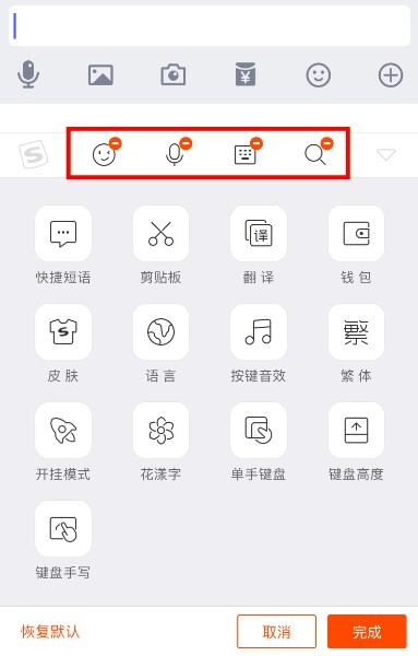 搜狗输入法的工具栏默认配备了表情、键盘、语音和搜索这四个主要工具,但如果这些并非你想使用的,想要对工具栏进行自定义设置,此时该如何操作呢?一起来看看: