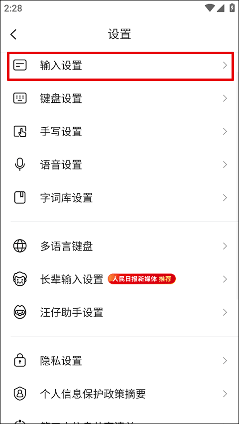 2、在设置找到并点击“输入设置”功能选项;