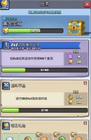 2、每天一定要完成皇冠和宝箱的获取任务。这样你不断积累的资源将会助你一臂之力。