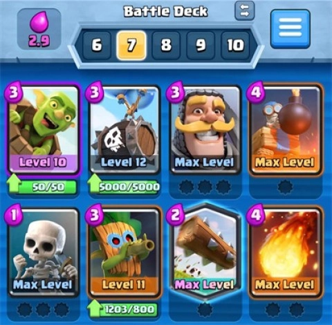这张仅需2点圣水的卡牌,既能造成伤害,又附带击退效果。碎裂后召唤出的野蛮人同样具有威胁性,作为一张能实现双重用途的卡牌,它的清场表现相当出色,用来牵制敌人后排更是不在话下。