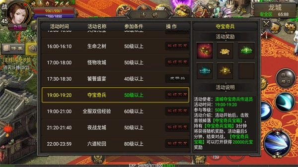 2、丰富的开服活动,完成指定任务即可领取海量奖励。
