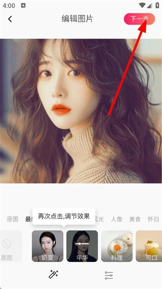 3、在图片编辑页面,编辑图片后,点击下一步,进入发布准备页面。