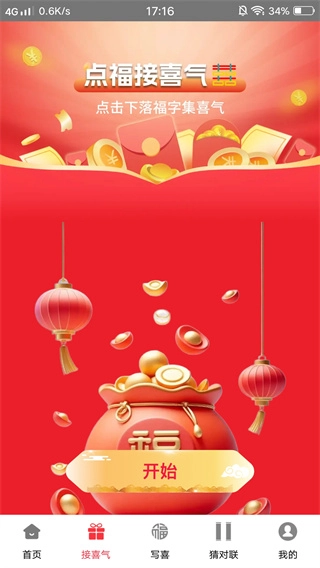 4、点击开始,一起来接福气,看大家能够接多少福气,一起欢乐的沉浸其中;