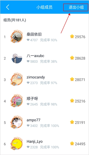 2、进到界面后,点击右上角的“推出小组”即可退出啦。