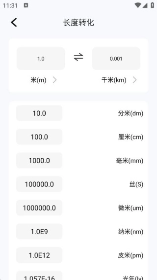 4、长度转换操作简单,直接输入数据,单位,就可以完成转换。