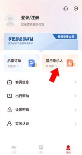 3、之后点击常用乘机人并根据提示输入相应信息即可完成添加
