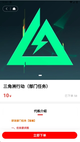 2、在具体任务详情页面中可以了解具体的代练要求,可以随时点击立即下单;