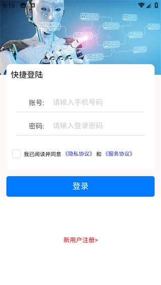 3、没有账号可以先注册,点击下方新用户注册,填写对应信息完成注册;