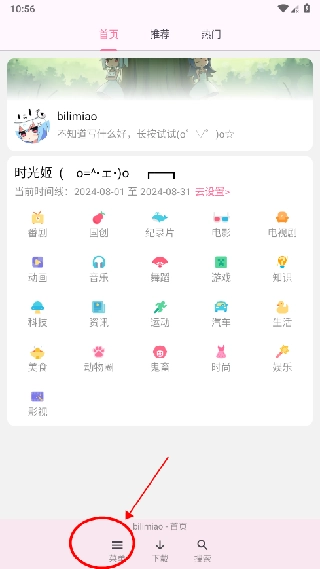 1. 打开bilimiao,在首页左下角点击【菜单】。