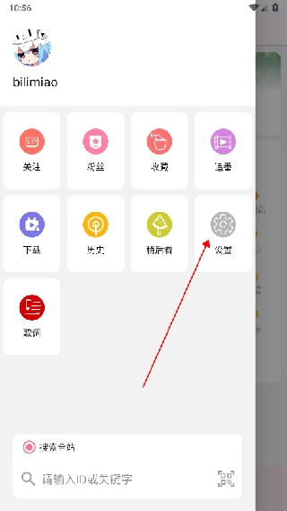 3. 在bilimiao首页的搜索框中输入视频ID时,需要在ID前加上av、anime或live前缀。