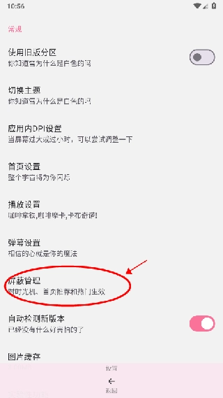 2. 进入设置页面后,往下拉动找到【屏蔽管理】并进入。