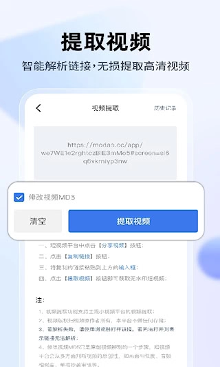 1、核心去水印功能:通过复制短视频链接,可快速提取各大平台的无水印内容。这一设计极大简化了操作流程,让清除工作变得轻松便捷。