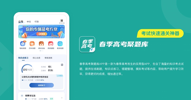 春季高考聚题库是专门为广大春季高考考生打造的学习工具,海量题库资源,配备详尽的答案解析,还具备智能练习、模拟考试、个性化学习规划等实用功能,能助力考生更高效地备考学习,有需要的小伙伴欢迎前来体验使用。