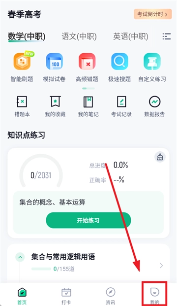 打开春季高考聚题库,进入首页后点击我的