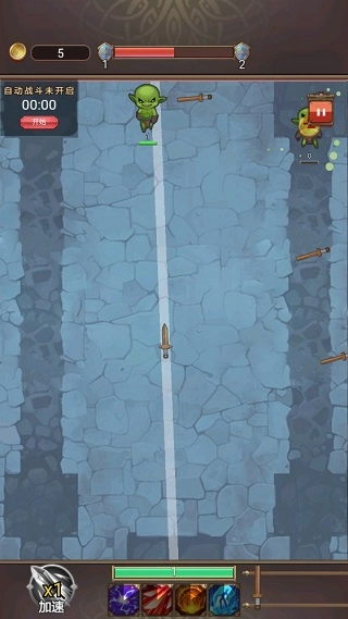 下面便是勇者大人携带的武器,武器会按照顺序依次射出,光标所指的方向就是剑射出的轨迹,还请勇者大人移动光标消灭怪物。