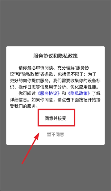 安装并打开企橙车务通,在服务协议和隐私政策提示界面点击同意并接受
