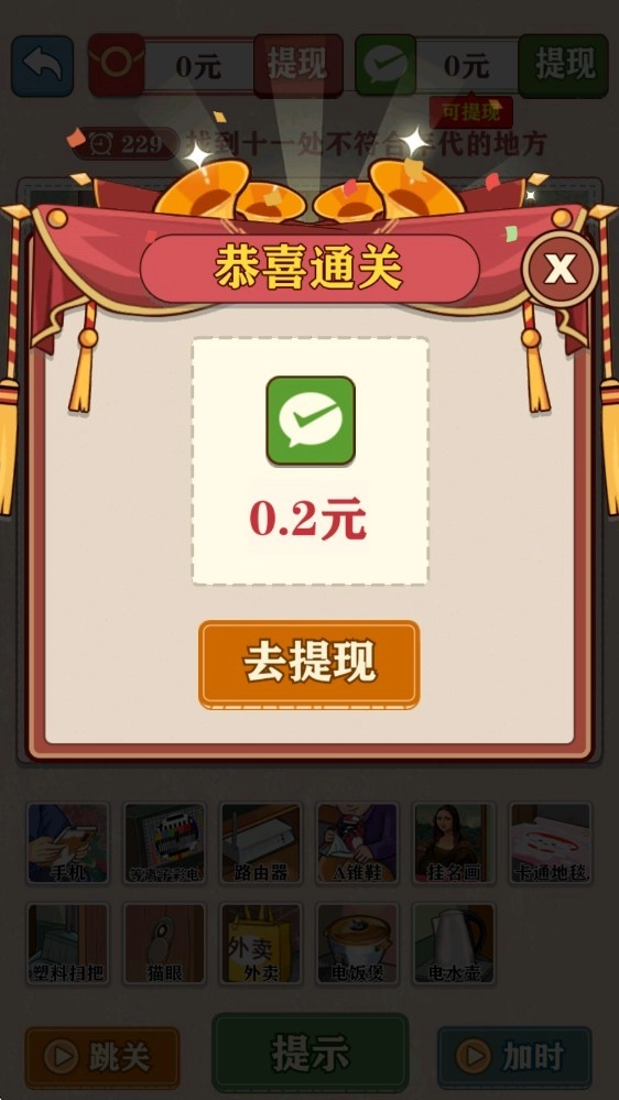 5、找到所有物品后即可过关,获得对应的奖励。
