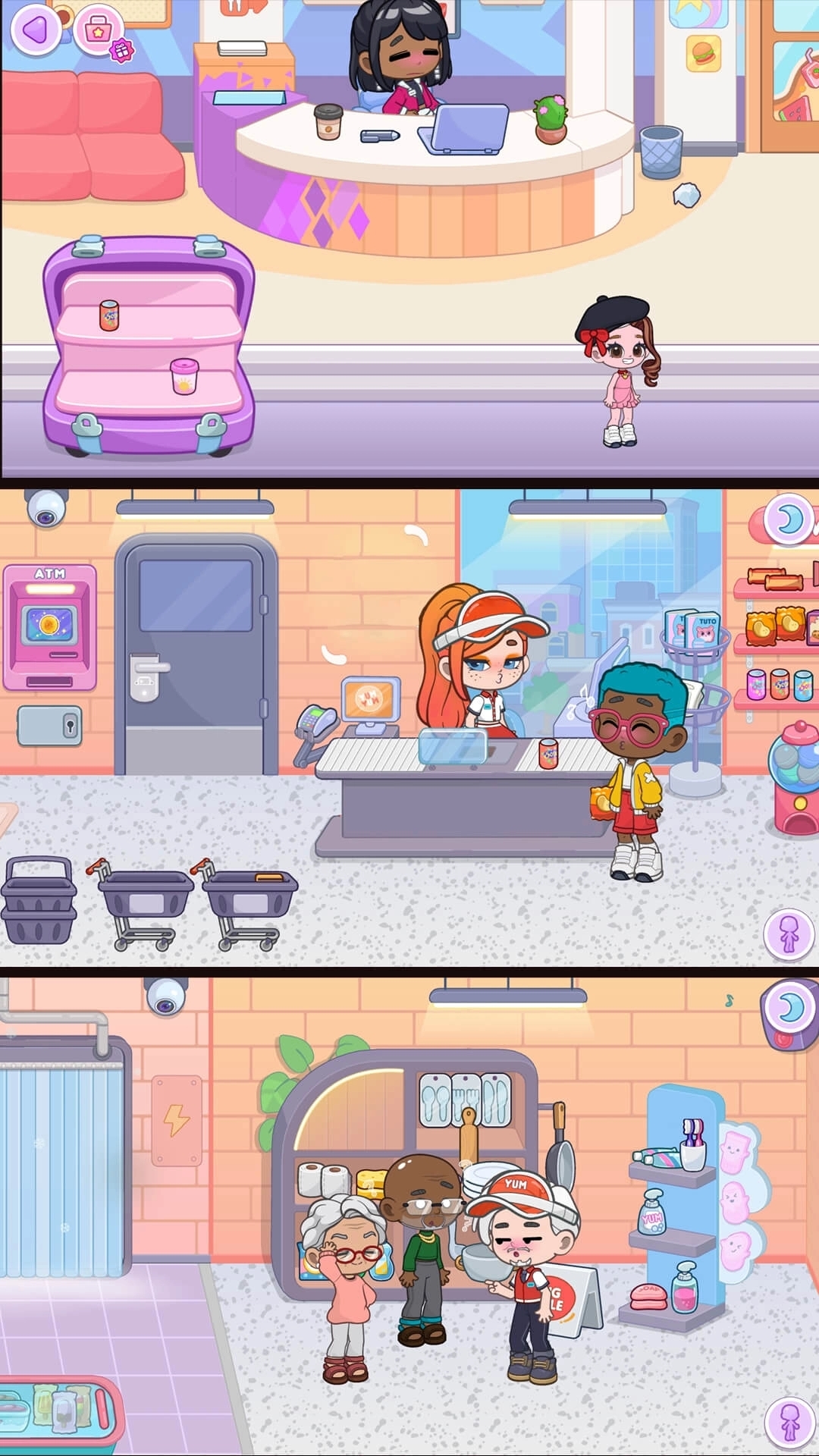 可爱的画风:游戏采用卡通风格的画面,色彩鲜明,角色和场景设计都非常可爱,营造出温馨愉快的氛围。