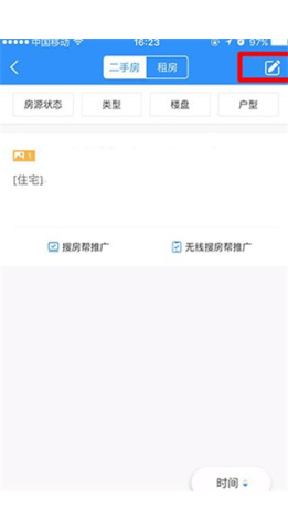 3、点击“房源管理”进入对应页面后,找到右上角的“笔形”图标并点击,即可录入二手房房源信息。