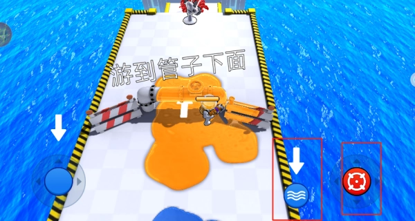4、点击右边的波浪按钮,可以控制你的角色游泳,轻松的躲避敌人从而过关。