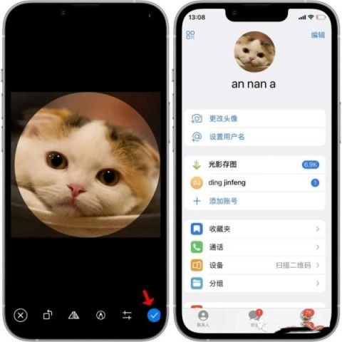 7、选中图片后,点击右下角的【√】按钮就能完成头像设置,让你的个性形象瞬间焕然一新。