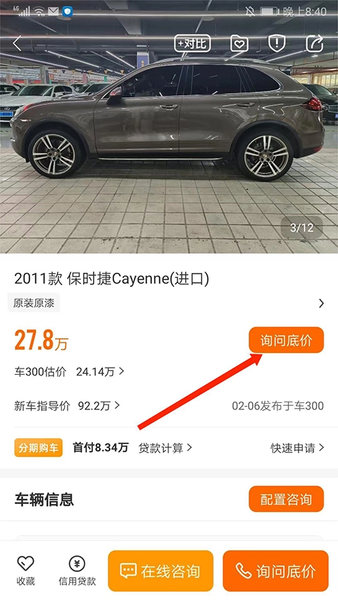 3、进入【车辆信息】界面,选择【询问低价】选项,