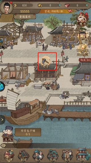 点击锤子图标快速建设商铺,是最基础也最稳定的铜钱来源。