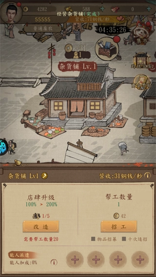 招募帮工、升级店铺等级,立刻让铜钱收入倍增。