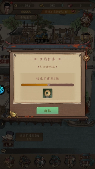 完成主线任务不仅能解锁更多功能,还可直接获得铜钱奖励和资源支持。