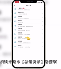 2、随后,点击右上角的“更多”图标,选择“音乐工具”,找到并点击“极速传歌”功能。
