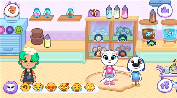 2、物理模拟系统:当物件发生碰撞时会产生真实的互动反馈,比如推倒积木塔的瞬间汤姆猫会受惊跳起,而蛋糕掉落之后则会被汉克狗悄悄吃掉。