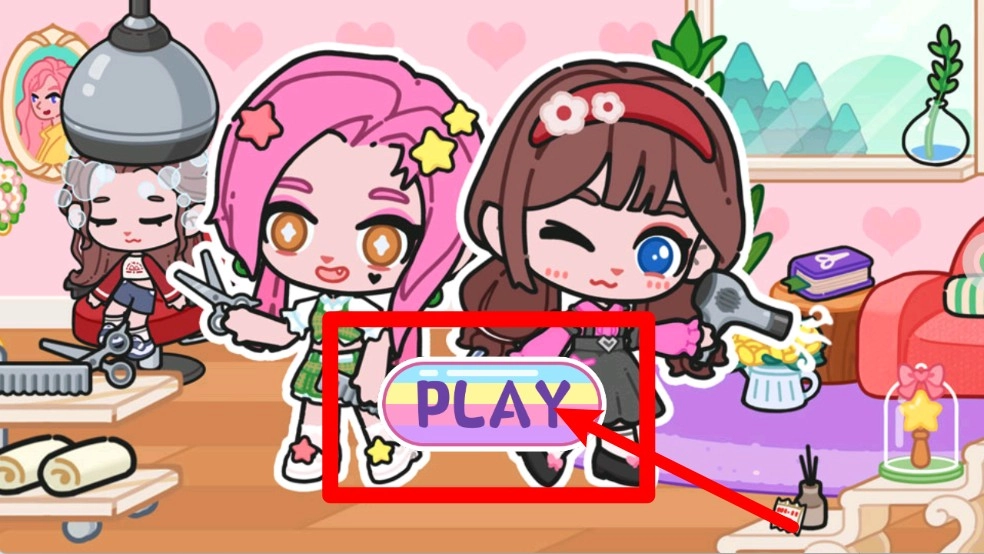 1.点击PLAY开始游戏,进入沙龙或服装店完成发型妆容搭配并保存获取丰富奖励。