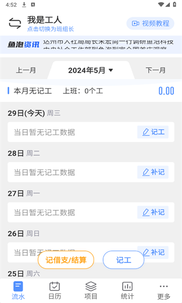 工地记工是一款专注于建筑工程领域的专业记工记账软件,集记工记账、考勤管理、工资对账结算、工作进度拍照等多样功能于一体,功能丰富实用,能为工资核算与项目进度管理带来便捷,助力提升工地管理水平,有需求的话就赶紧来体验吧!