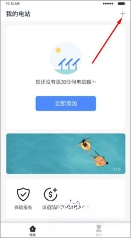 1、完成安装后,进行注册并登录账号,点击电站主页右上角的“+”图标,选择“添加设备”选项进入选择电站页面,再依据实际情况选定需要添加设备的对应电站。