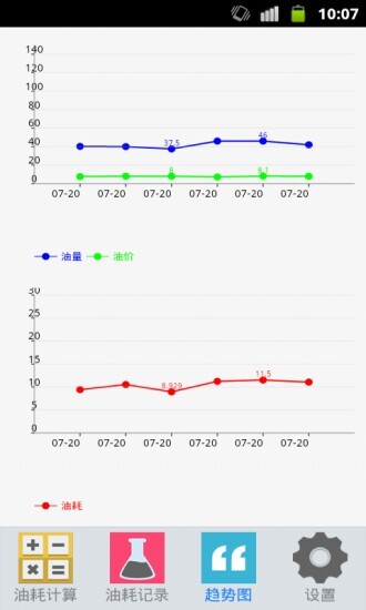 3、详尽里程与油耗变化曲线图,直观展示变化趋势。
