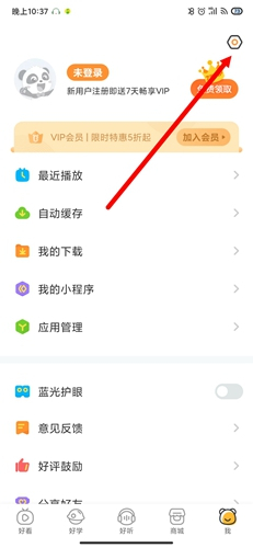 首先,我们先点击界面中的【我】选项,进入到个人中心页面,接着再点击页面右上角那个齿轮形状的图标。