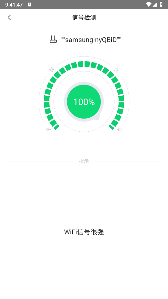 5、如图所示,进入信号强度检测页面,等待几秒即可完成检测。