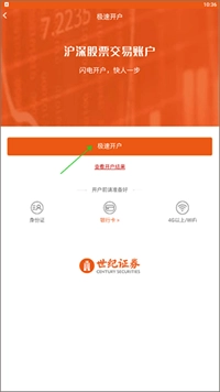 4、进入“极速开户”页面后,点击“极速开户”。