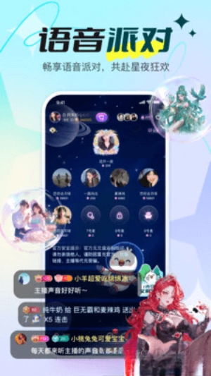 1. 主打的语音派对模式让你得以与他人进行有温度的聊天,还有个人直播、团战PK等方式拉近彼此感情。