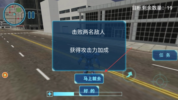 1、看到击败两名敌人,获得攻击力加成提示后,点击马上就去按钮,迅速寻找敌人。