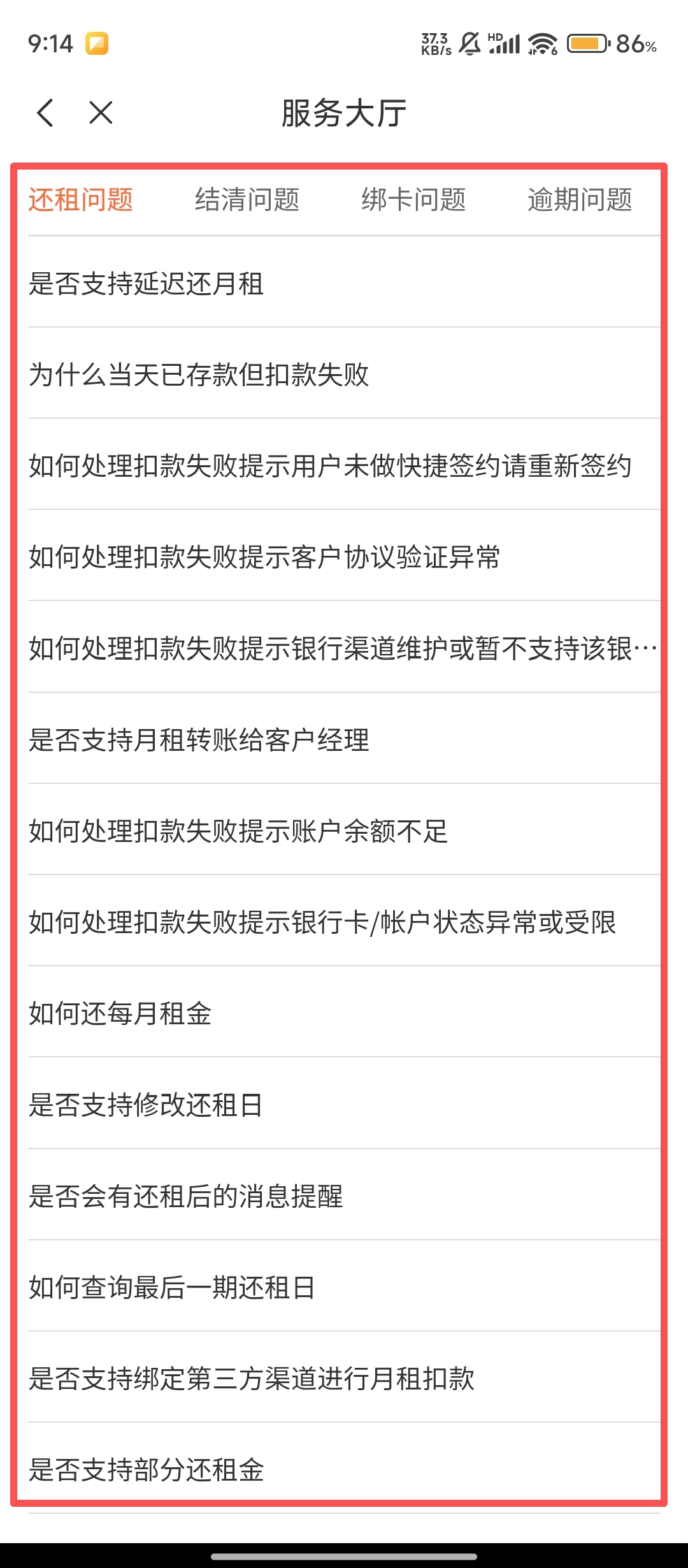 4、在服务大厅的常见问题【更多】页面,您可以根据自身需求查看【还租问题】等分类下的具体疑问,点击相应疑问就能与客服沟通相关问题。