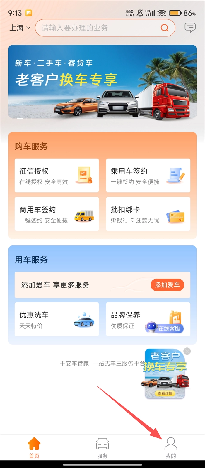 1、打开平安车管家应用,在首页底部找到【我的】按钮并点击,就能进入个人中心页面,开启后续的服务查询流程啦。