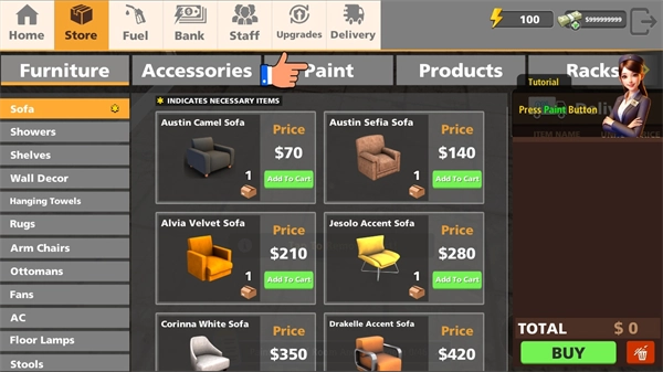 11.点击右侧的购物车图标,购买旅店的家居等物品。