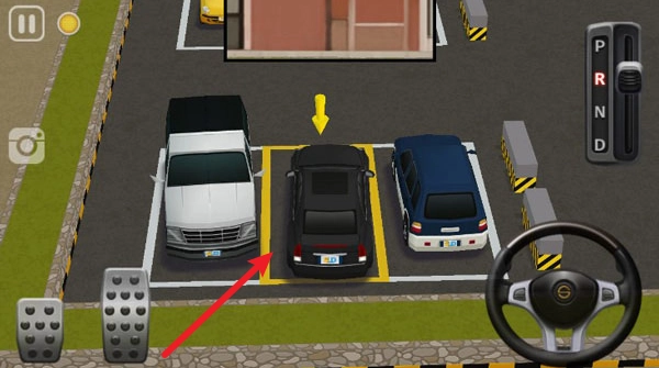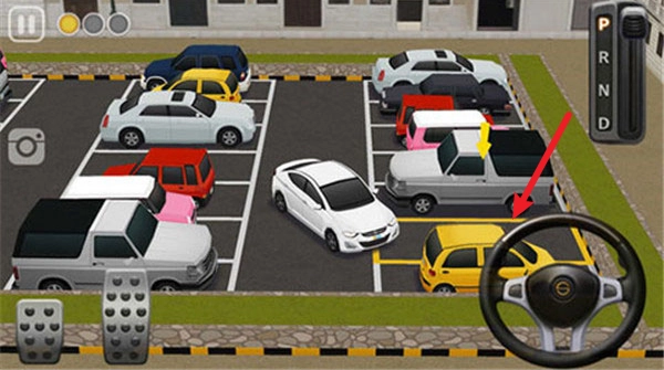 4、接下来看看实际操作,如图所示,我们需要操控目标车辆,将其停在黄色的停车位。