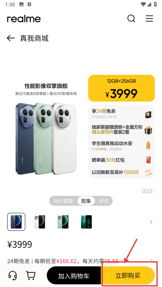 2、在手机购买页面,选择真我GT8-Pro条目,进入产品详情页。