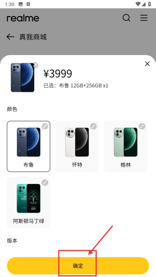 4、在配置选择窗口,选择心仪的颜色和版本后,点击确定按钮,进行该手机的购买操作。