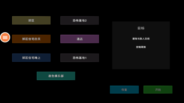 3.操控角色移动至门口位置,就能进入地图选择界面,界面中提供了郊区、酒店等七款不同的地图,具体样式可参考下图。