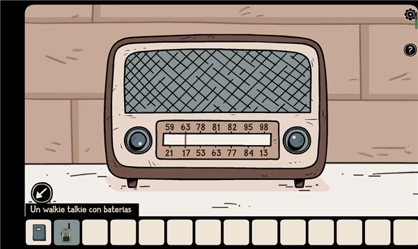 4、到白色门右侧的抽屉柜处取两节「电池」,把它们装到对讲机里,接着将对讲机调到频道4播放音乐,再依据听到的音乐来调整收音机的频道(要记住对应的频道数字);组合道具的操作是先选中一个道具,然后点击Grab选项,再选中另一个道具,另外收音机右下方的抽屉上有密码符号。