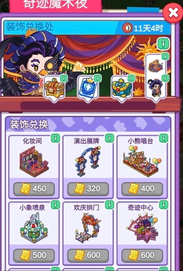 可根据舞台的人物选择需要的动物和相应等级的杂技箱
