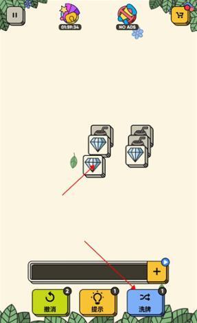 3、点击洗牌,牌库会直接点亮一组相同的卡牌